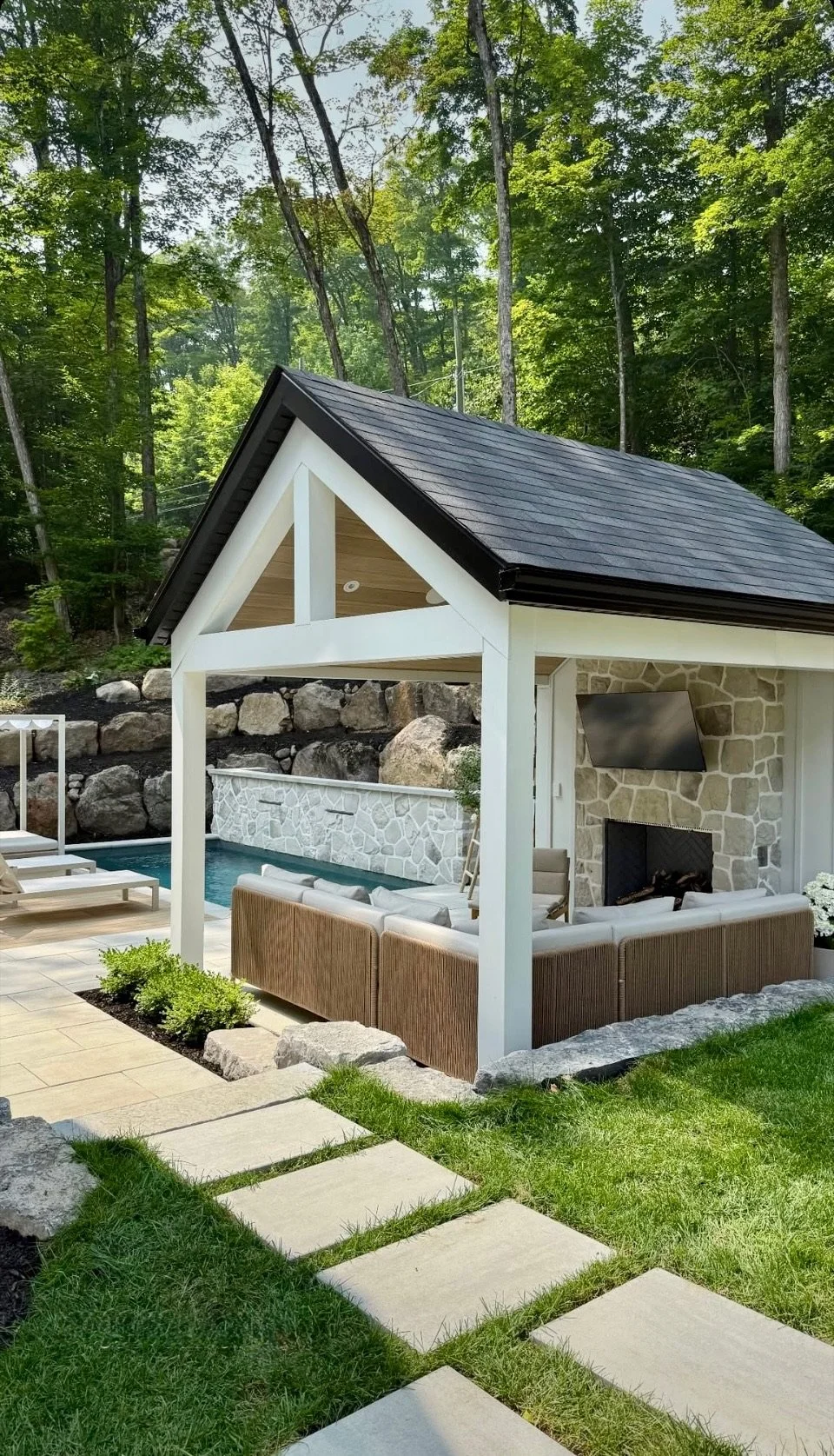 Murs d’accent de piscine et de « cabana » en Pierres Royales Field Stone Everest à Sainte-Adèle.