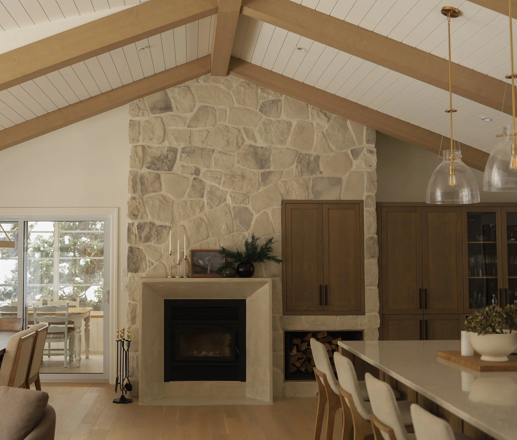 Foyer intérieur Crazy Work en pierres naturelles à Saint-Donat.