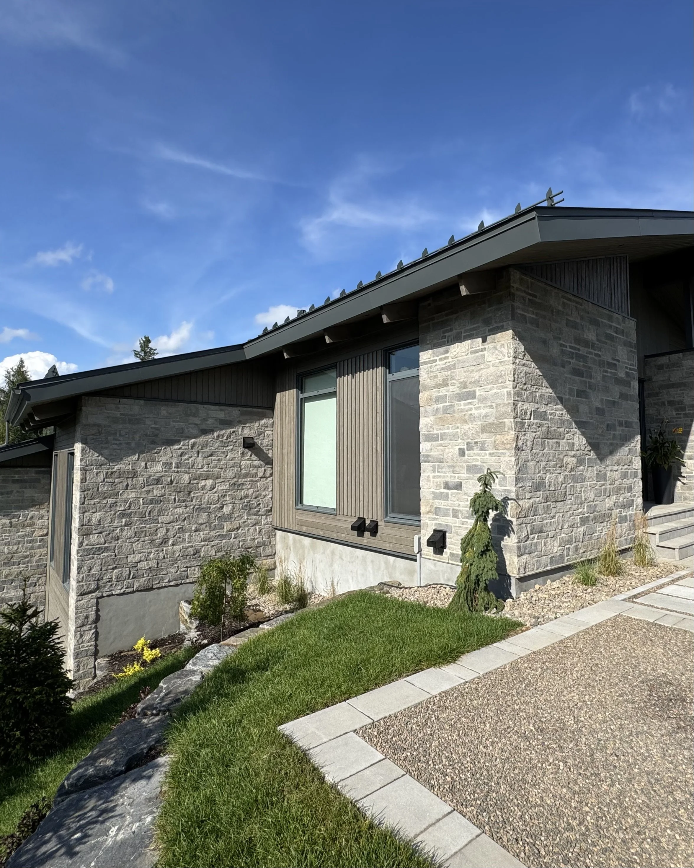 Maçonnerie extérieure en Pierres Royales Lime Stone couleur Aspen au Lac-Supérieur.